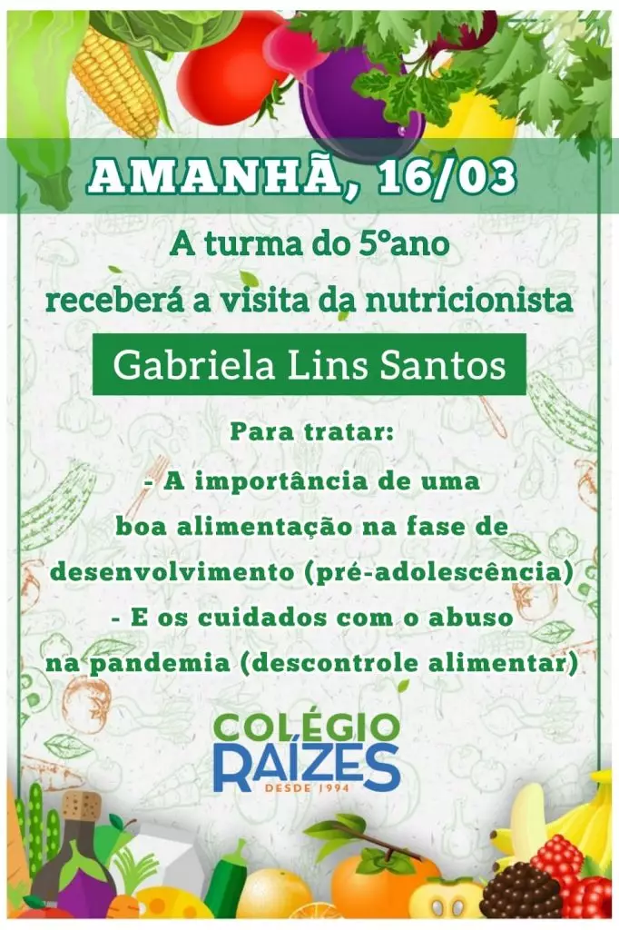 Amanhã o 5º ano terá uma visita especial para falar sobre a importância da alimentação saudável!
