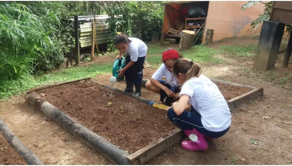 Iniciaram com a elaboração de plaquinhas de identificação, plantio das sementes, acompanharam todo o processo de germinação e então, foram levar as mudas para a horta. Colocaram a mão na massa, ou melhor, na terra e com todo carinho plantaram suas hortaliças. Agora, é só aguardar a colheita!