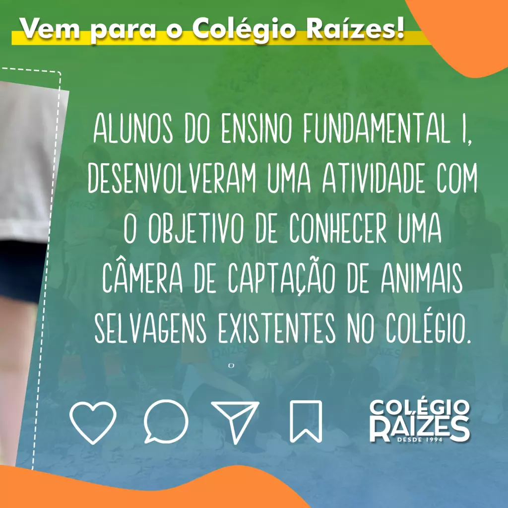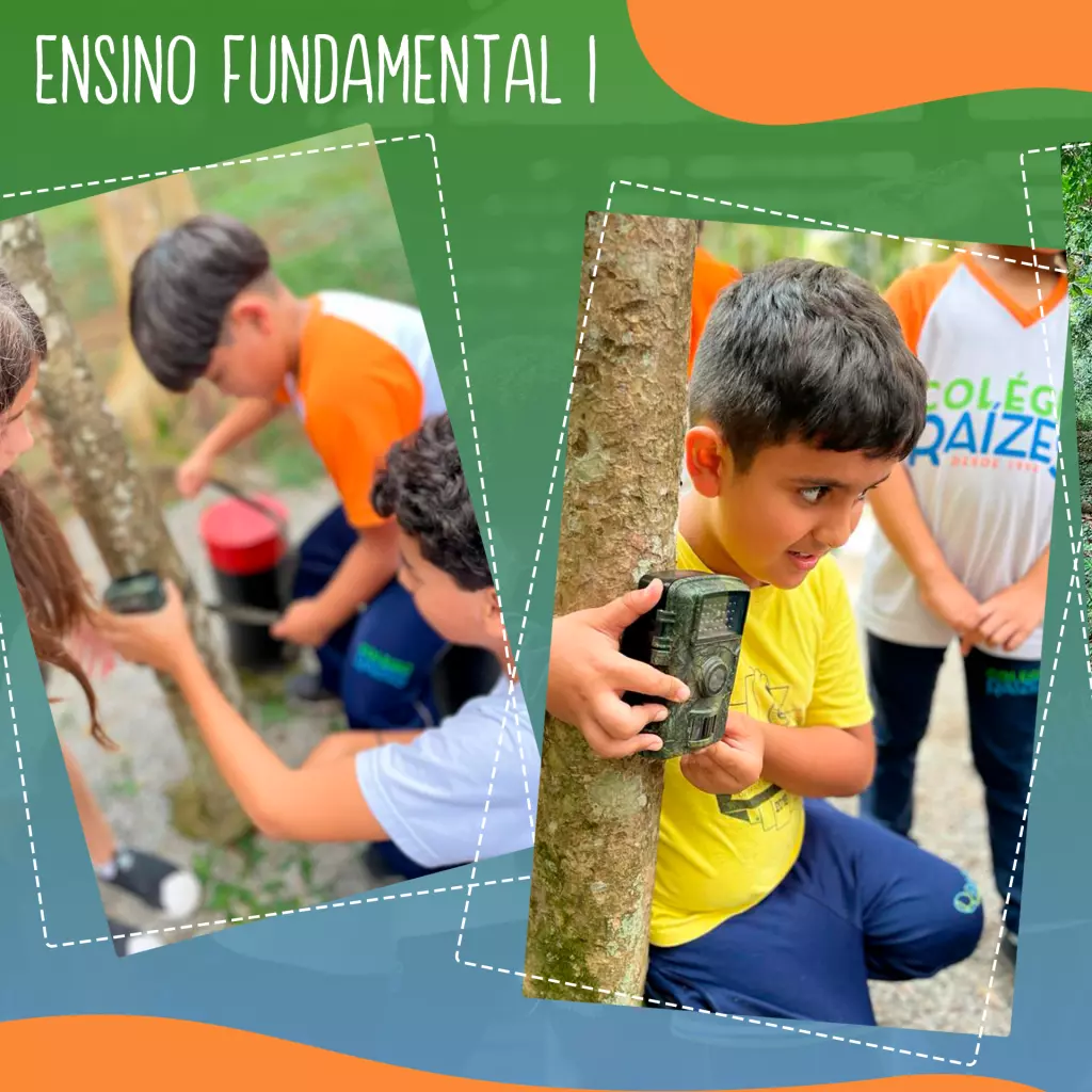 Atrelada ao eixo temático de biodiversidade trabalhado nas tarefas de Educação Ambiental do Programa Eco-Escola, alunos do Ensino Fundamental I, desenvolveram uma atividade com o objetivo de conhecer uma câmera de capitação de animais selvagens existentes no colégio. Além disso, a turma ainda pode analisar quais eram as espécies que se movimentam na área da escola.