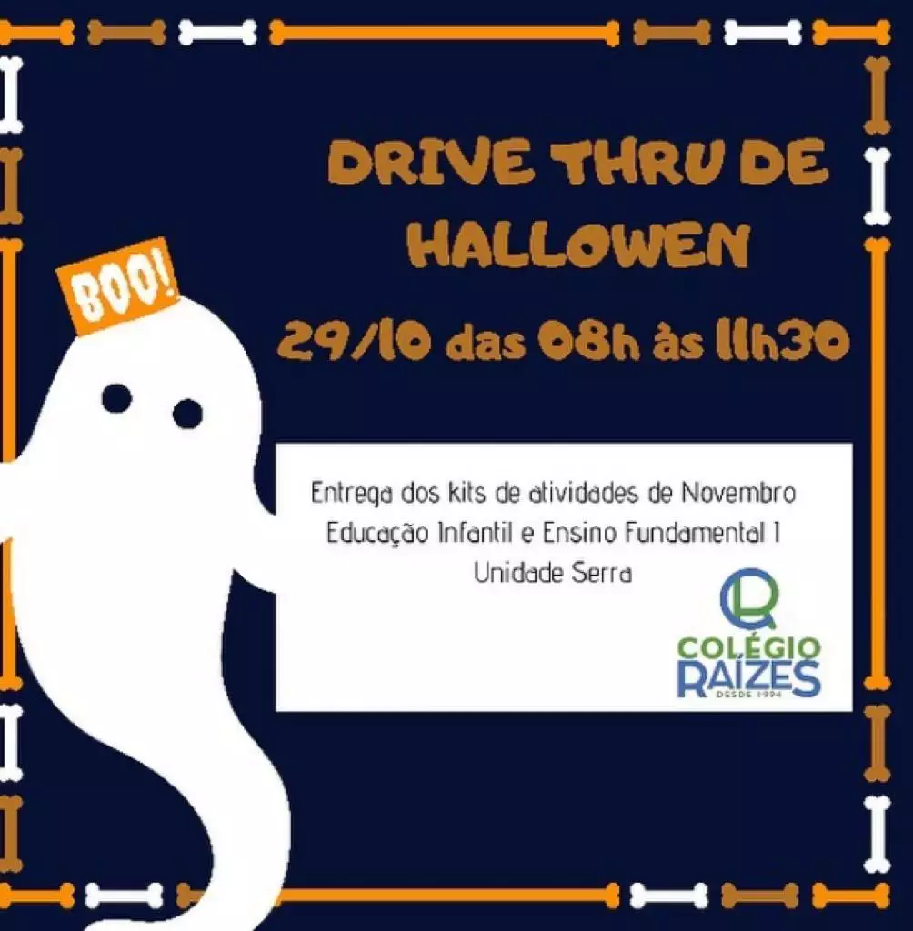 Em clima de Halloween no dia 29/10 será feita a entrega dos Kits de atividades de Novembro na Unidade da Serra por sistema Drive Thru das 8h às 12h.