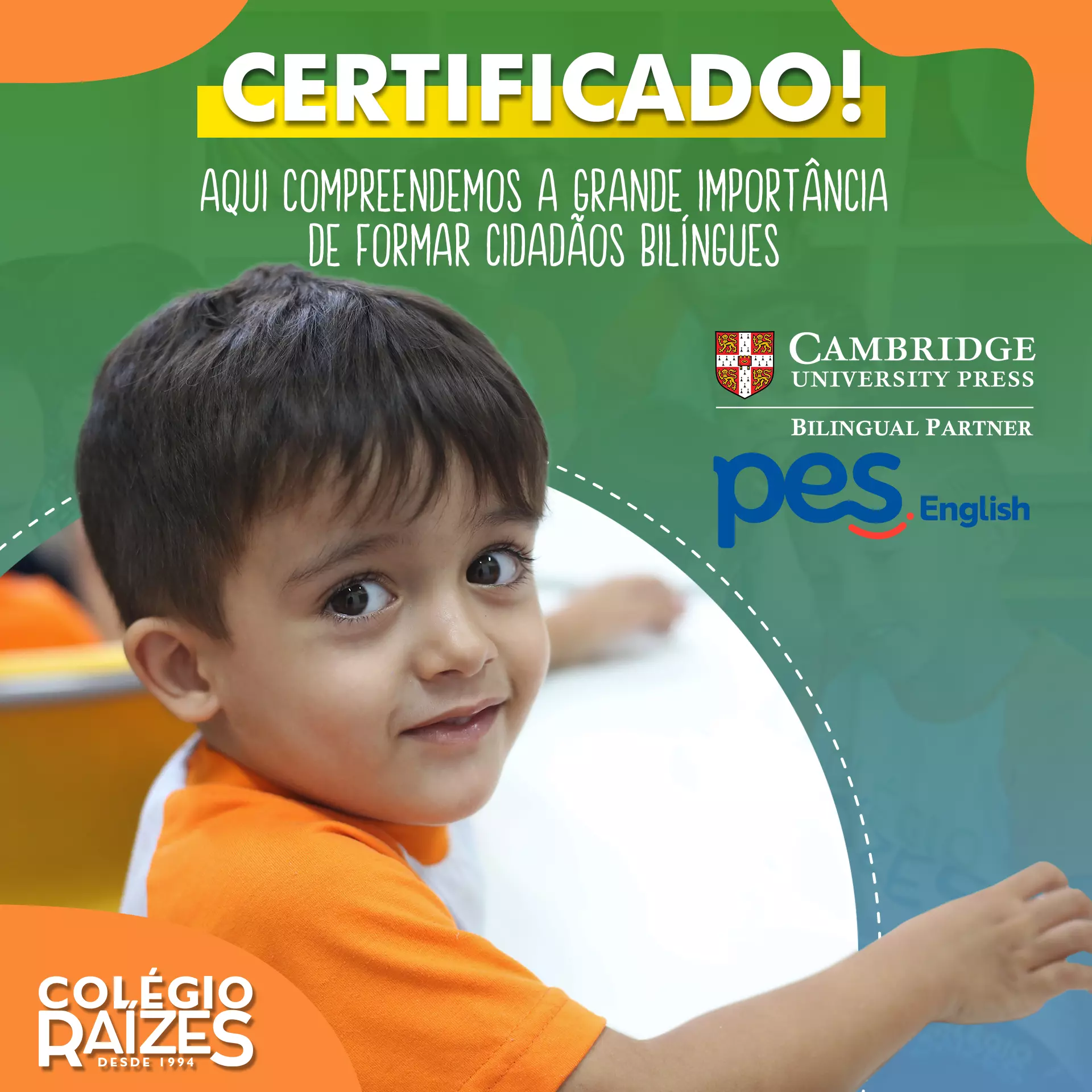 Possuímos parceria com o Sistema Cambridge Press Bilingual, que é uma iniciativa que estabelece parceria entre escolas e a Cambridge University Press para oferecer uma educação bilíngue de alta qualidade. A Cambridge University Press é uma renomada instituição acadêmica editorial especializada em cursos educacionais, incluindo materiais didáticos, currículos e programas de ensino.