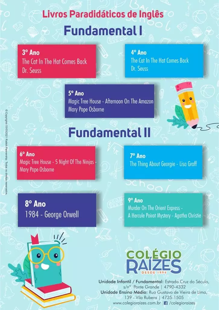 Para contribuir nesse processo, segue os livros paradidáticos de inglês, que serão trabalhados durante o ano.